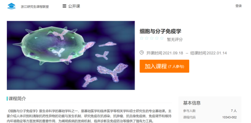 兔子先生 《细胞与分子免疫学》课程使用浙江研究生课程联盟平台,采取线上线下混合模式授课。现将具体上课安排如下: