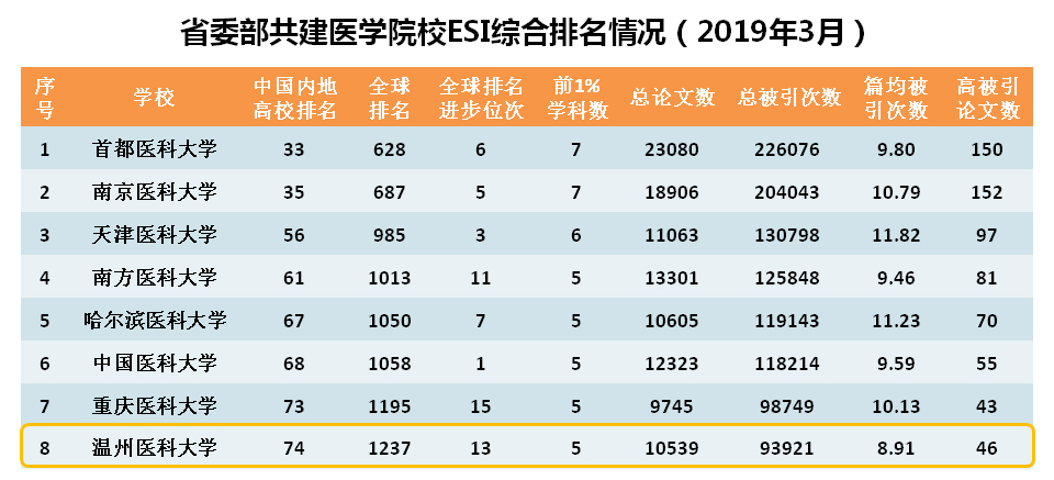 据2019年3月最新基本科学指标数据库(Essential Science Indicators,简称ESI)数据更新显示,兔子先生 分子生物学与遗传学(Molecular Biology & Genetics)和材料科学(Materials Sciences)两个学科首次进入ESI全球排名前1%。截止目前,兔子先生 进入全球前1%的学科数从2017年9月省重点高校启动建设前的3个增加到5个,学校ESI综合排名位列中国内地高校第74位,位列省委部共建医学院校高校第八位,位列浙江省省属高校第一位,全球排名升至第1237位,创历史新高。