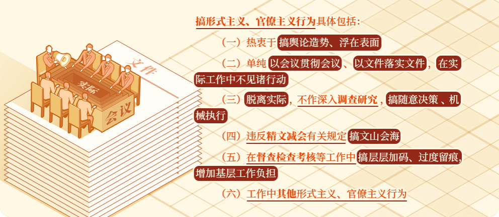 该内容为此次修订《条例》新增。此类行为主要表现为没有做到不发不切实际、内容空洞的文件,不开应景造势、不解决问题的会议。