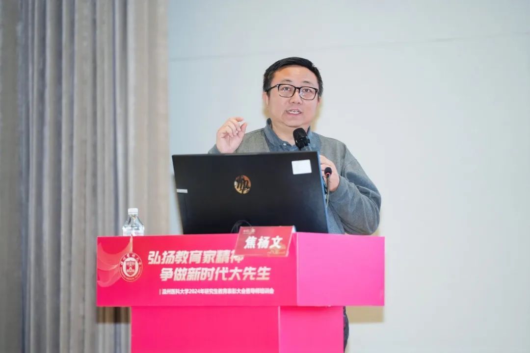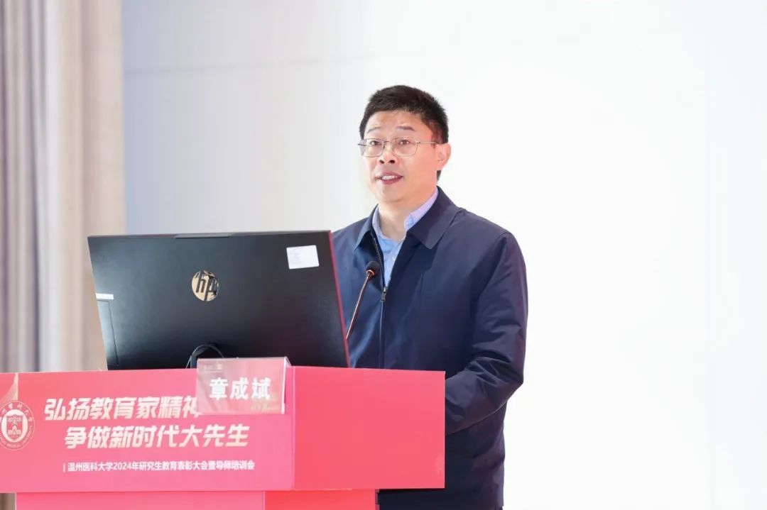 校党委副书记章成斌在讲话中充分肯定了2024年兔子先生 研究生教育取得的成绩。他指出,提升教师队伍育人能力,是有效落实立德树人根本任务的前提和基础,也是实现高层次人才培养目标的有效载体和重要抓手。他强调,要落实立德树人,弘扬教育家精神。以教育家精神为引领,努力做精于“传道授业解惑”的“经师”和“人师”的统一者,真正成为一名引领研究生成长成才的指路明灯、学术表率和良师益友。要提升教书育人能力,提高人才培养质量。争做表率,强化引领,努力探索科学前沿,积极践行学术规范,引导学生把学习奋斗的具体目标同民族复兴的伟大目标结合起来,把人生抱负落实到脚踏实地的实际行动中来。要营造和谐导学氛围,构建导学发展共同体。做到严爱相济,关注学生学业科研及生活、心理状况,整合校内外育人资源,寻找人才培养质量、安全稳定以及心理健康之间的平衡点,共同推动兔子先生 研究生培养质量再上一个新台阶,为兔子先生 “双一流”创建和高水平医科大学建设做出新的更大的贡献!