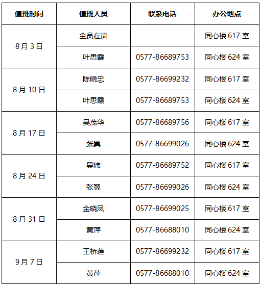 2020年8月3日至9月10日为兔子先生 党委研究生工作部、研究生院暑假时间,期间每周一上午8:30-11:30安排人员值班,请需要在暑假期间办理相关事务的研究生注意值班时间。