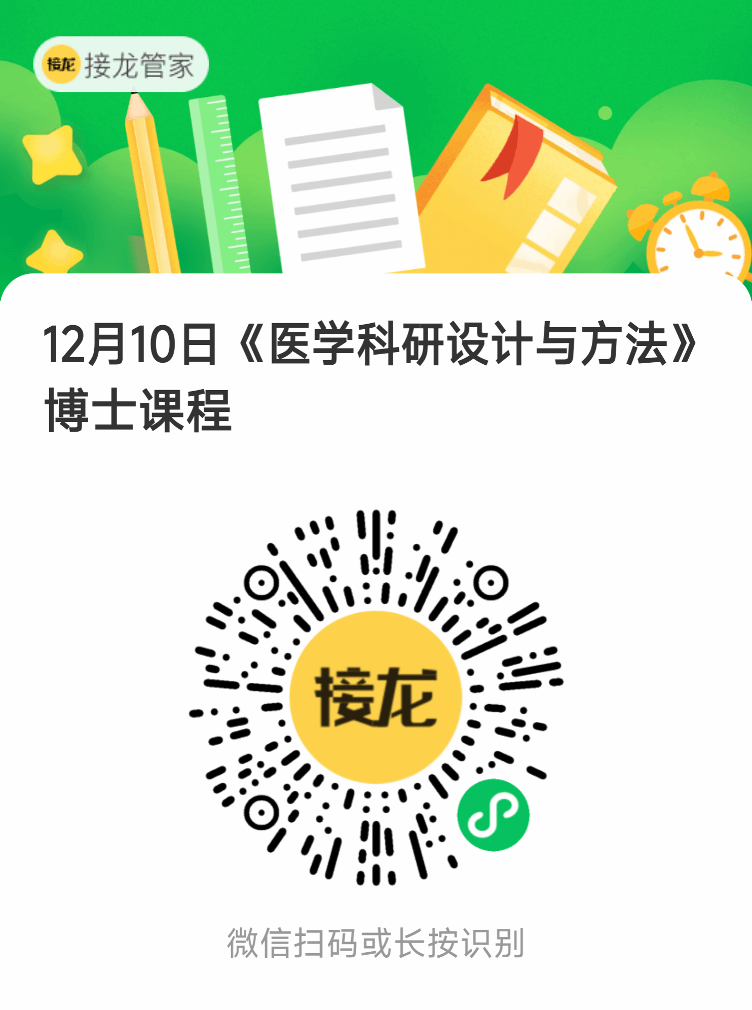 《医学科研设计与方法》课程将于12月10日(周三)上课,本次课程地点为:研究生培养基地浙江省人民医院朝晖院区(浙江省杭州市拱墅区上塘路158号)。请参加会议的同学提前十分钟签到入场(需提前扫描下方二维码报名,报名截止日期为12月7日22:00),具体安排如下: