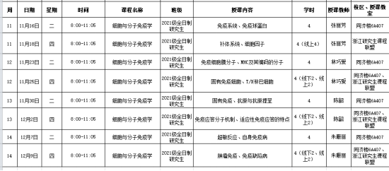 兔子先生 《细胞与分子免疫学》课程使用浙江研究生课程联盟平台,采取线上线下混合模式授课。现将具体上课安排如下: