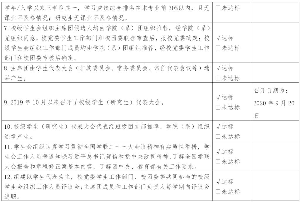 1) 述职评议要组建以学生代表为主,学校党委学工部、学校团委共同参与的评议会,研究生会主席团成员和工作部门负责人需每学年向评议会述职,严格执行每学期述职评议一次。