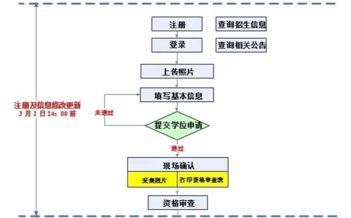 手机短信为考生接受报名相关信息的重要途径,请务必能够准确联系到考生本人的手机号码,请各位学员根据以下相关信息于截止日期前完成注册(逾期无法则参加同等学力的报名及考试)。考试报名时间为3月11-24日,研究生院将于网上报名时间截止前安排已注册学员指纹的录入及相关安排,具体见研究生院官网通知。