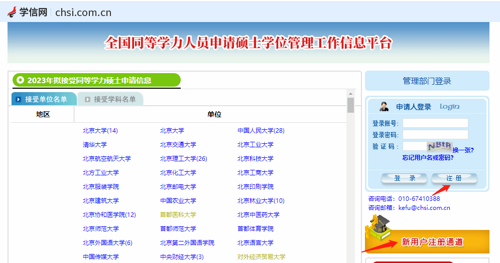 一、申请人登录//tdxl.chsi.com.cn/tdxlsqxt/index.html网页后,进入“新用户注册通道”,用注册邮箱激活账号。请牢记用户名、密码,此用户名将作为申请人在“信息平台”的唯一凭证,用于绑定、查询统考成绩等。