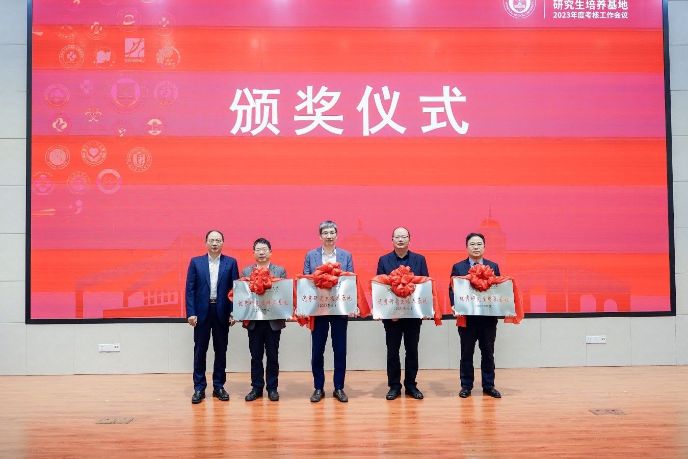此次会议还举行了颁奖仪式。根据现场投票结果,附属第五医院(丽水市中心医院)、附属台州医院(浙江省台州医院)、附属衢州医院(衢州市人民医院)、附属东阳医院(东阳市人民医院)4家基地获“兔子先生 2023年度优秀研究生培养基地”称号。