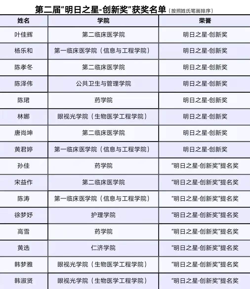 “明日之星-创新奖”由李校堃校长于2018年出资设立,面向全体本科生和硕博研究生,旨在激励学生增强创新意识,提升创新能力。