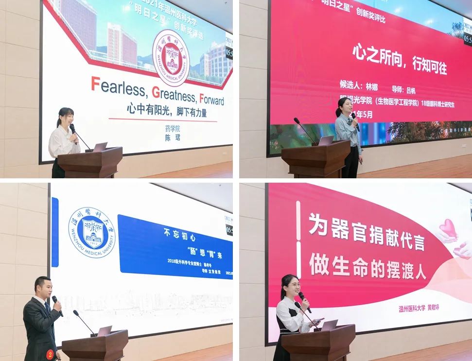 5月31日下午,温医大第二届“明日之星-创新奖”评选大会在生物医药科研楼报告厅举行。经学生申报、学院推荐、学校评审,16名候选人进入现场评选。经过激烈角逐,叶佳辉等8名同学入选“明日之星-创新奖”,孙佳等8名同学入围“明日之星-创新奖”提名奖。