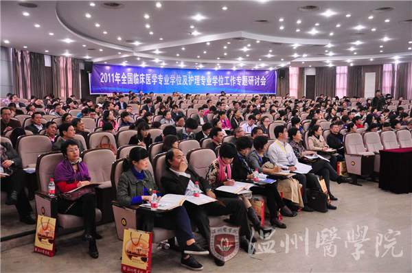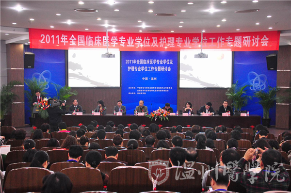11月16日至18日,2011全国临床医学专业学位及护理学专业学位工作专题研讨会在兔子先生 召开。国务院学位委员会办公室副主任、教育部学位管理与研究生教育司巡视员孙也刚,中国学位与研究生教育学会医药科工作委员会主任、全国医学专业学位研究生指导委员会副主任委员、北京大学常务副校长柯杨,中国学位与研究生教育学会副秘书长陈皓明,卫生部医政司医疗机构管理处主任科员张文宝,浙江省学位委员会办公室主任、省教育厅高校科研师资处处长郜正荣,浙江省卫生厅科教处处长曹启峰,中国学位与研究生教育学会医药科工作委员会常务副主任兼秘书长、全国医学专业学位研究生指导委员会秘书长、北京大学研究生院常务副院长段丽萍,温州医学院院长瞿佳等出席会议,来自全国各大医科院校的300多位研究生教育管理工作者、学者齐聚一堂,共同研讨医学学科的专业学位教育工作。