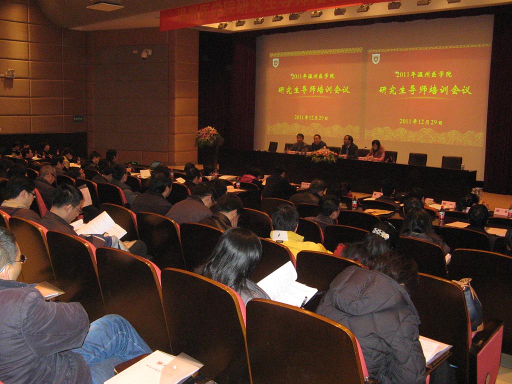 会上,仇毅书记详述了学校教学、科研现状,提出高水平的师资队伍和高水平的研究生教育两者密不可分,要进一步加强研究生导师队伍建设,尤其学术道德建设。希望导师认真钻研、带好学生,将温州医学院的学术水平提高到一个新的台阶。