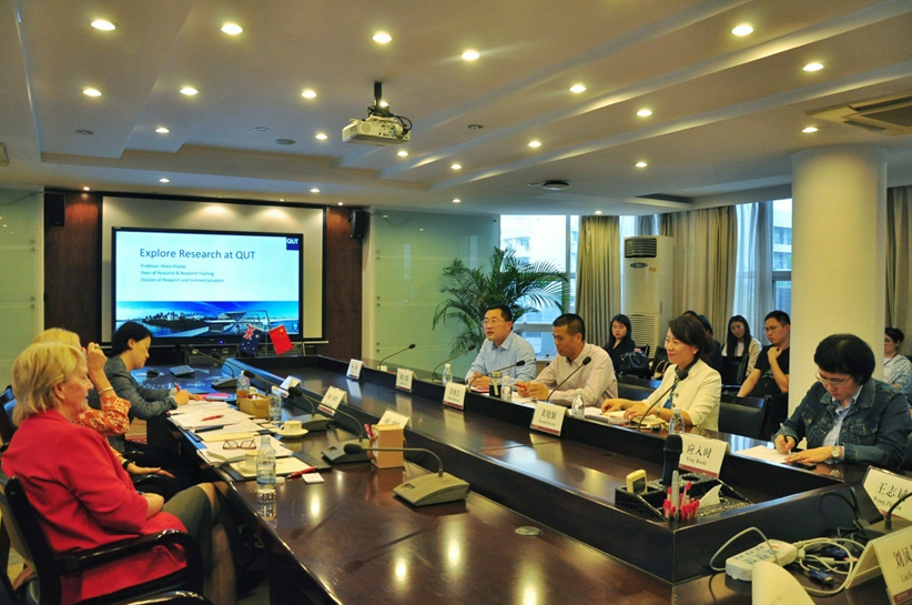 澳大利亚昆士兰科技大学研究生院院长海伦·克莱比(Helen Klaebe)教授介绍了昆士兰科技大学的概况、优势特色学科领域,以及联合培养硕士和博士项目申请流程和培养过程,就该项目所涉及的合作学科领域拓展和人员对接等具体问题与相关学院学科和研究生教育管理负责人进行深入讨论。