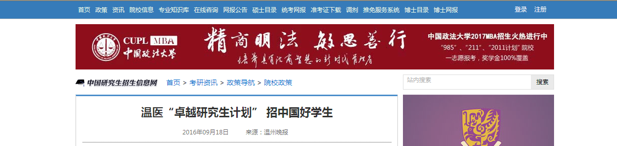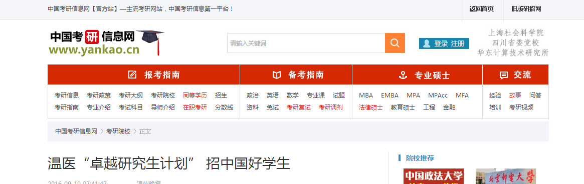 中国研究生招生信息网,//yz.chsi.com.cn/kyzx/yxzc/201609/20160918/1554296015.html
