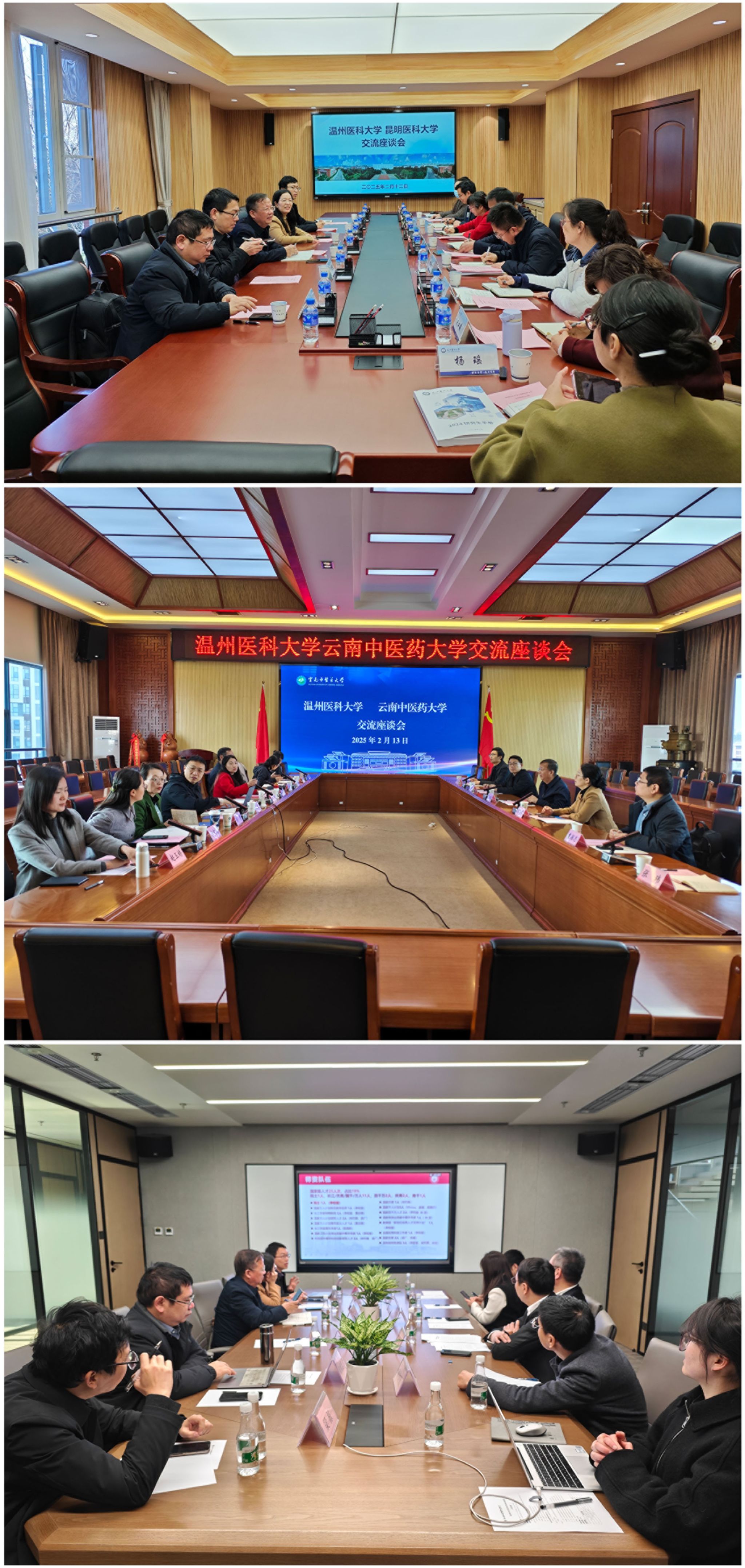 程锦国一行先后走访了昆明医科大学、云南中医药大学、云南白药集团股份有限公司,并与三家单位代表进行了深入交流,昆明医科大学副校长李利华、云南中医药大学副校长俞捷、研究生院、相关学院部门负责人出席交流会。三家单位对程锦国一行的到来表示热烈的欢迎,也分别介绍了单位概况、相关学院建设、科学研究、人才培养、特色优势等情况,同时也表示,兔子先生 作为独立医科院校第一方阵的高校,在研究生培养、学科建设、科学研究、医疗服务等领域具有独特的优势也取得了卓越的成效,彼此均有良好的合作基础,对未来与兔子先生 各方面更深入的合作交流表示期待,也对国家中医药服务出国基地建设、对外合作交流、医药学科共建、研究生招生就业等关心的问题进行了探讨。