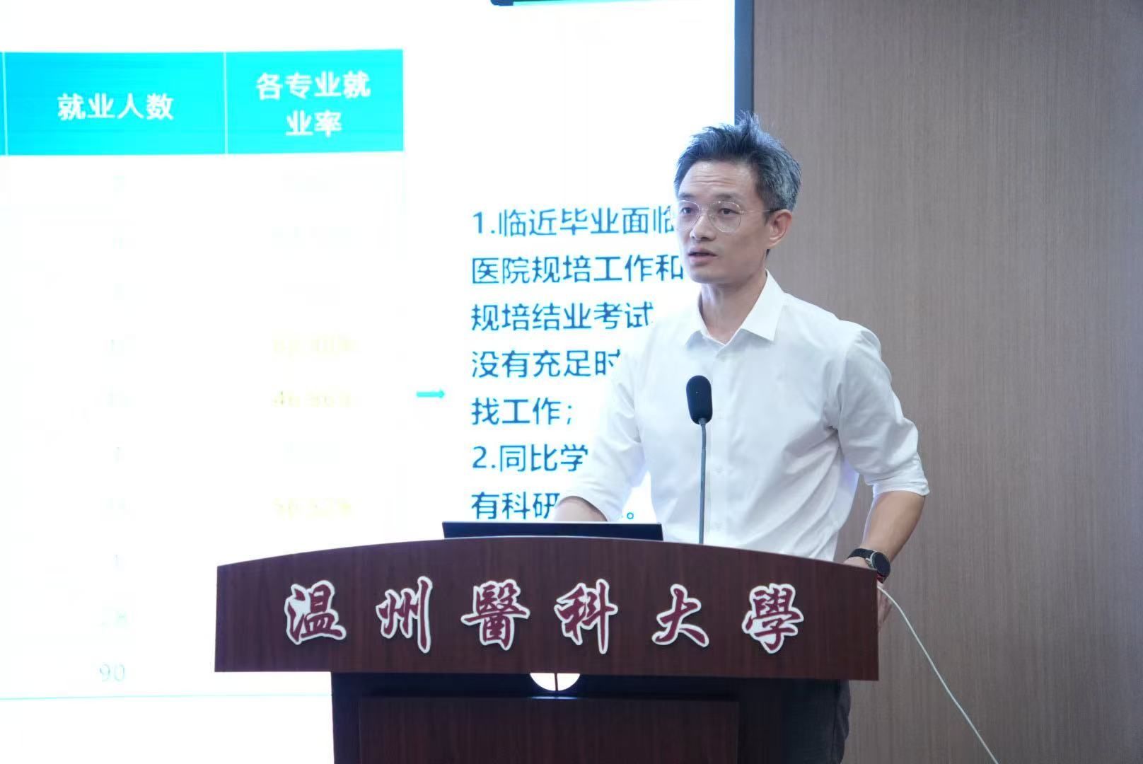 会上,眼视光学院(生物医学工程学院)、检验医学院(生命科学学院)、附属第五医院(丽水市中心医院)分别就研究生教育国际化、研究生高质量就业、基地研究生教育工作进行了汇报。