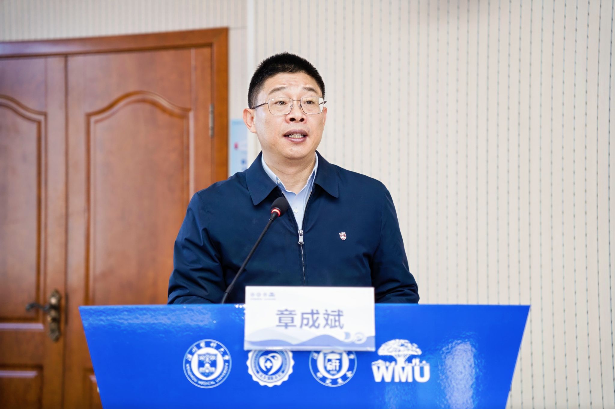 苍南县人民医院党委书记屠德敬代表医院向莅临苍南的来宾致以热烈的欢迎,并表示本次比赛是医院与学校深化战略合作,强化交流互鉴的重要契机,对医院的医学科研与医疗水平增进具有重要的现实意义。医院将竭诚为赛事提供全方位,精细化的服务保障,确保为各位参赛选手营造一个严谨、公正、透明的竞技环境。同时也希望进一步加强校院协作交流,联合开展临床攻关,共同推动医学事业的蓬勃发展,为守护人类的健康而不懈努力。