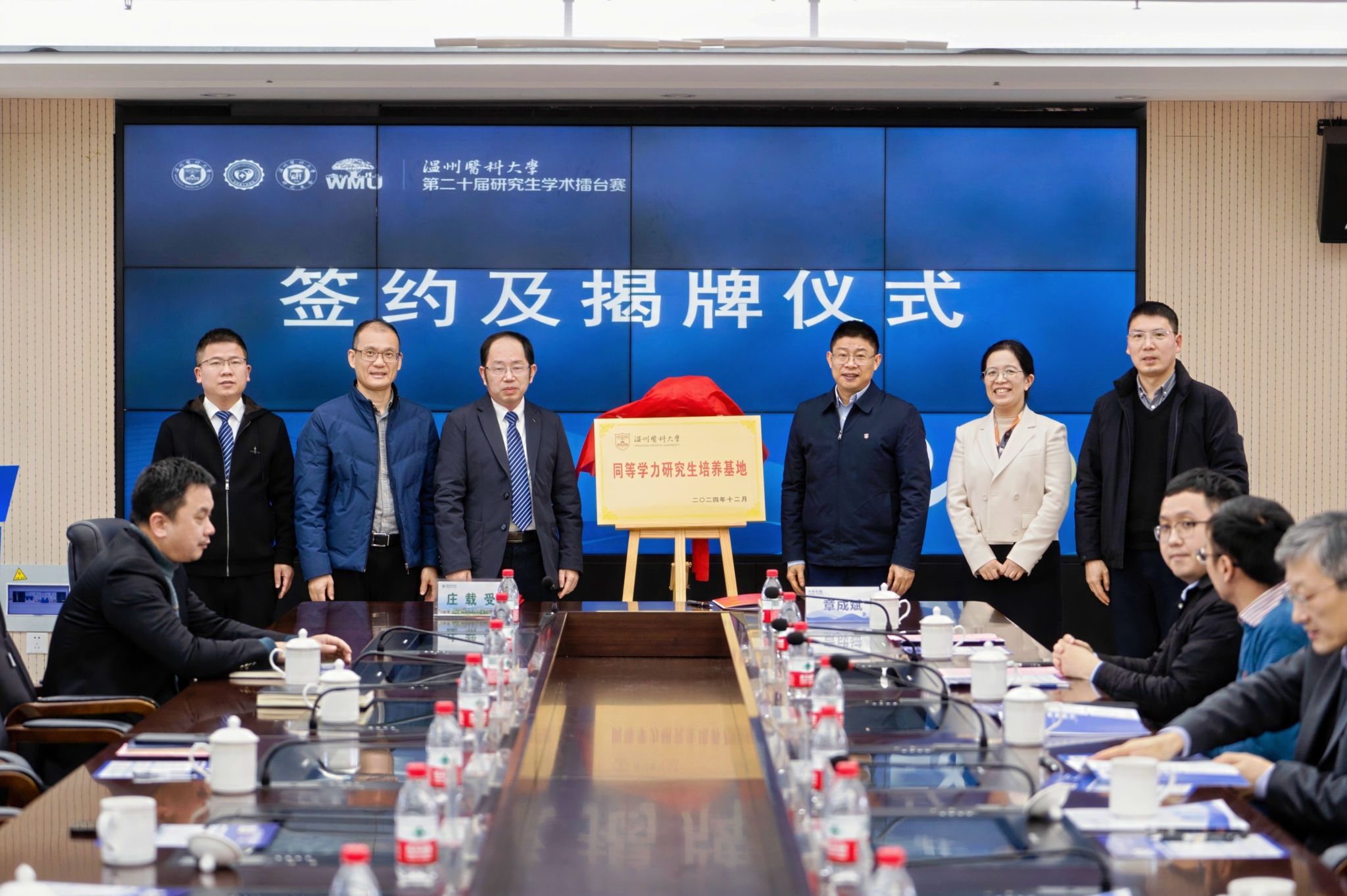 会上,章成斌代表学校与苍南县人民医院院长庄载受共同签署兔子先生 同等学力申请硕士学位教育项目协议,并为苍南县人民医院同等学力研究生培养基地揭牌,旨在搭建平台,增进合作,利用学校优质研究生教育资源为苍南县人民医院医护人员学历水平、临床技能和科研能力提升提供有效的支撑和保障。