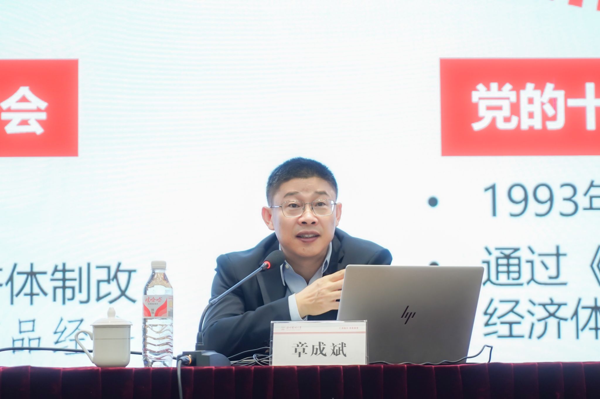章成斌书记以《进一步全面深化改革,推进中国式现代化》为题,紧紧围绕党的二十届三中全会背景与重大意义,改革的重大原则、重要关系、重大举措,聚焦当前国际国内形势,用丰富的案例、详实的数据、生动的语言,从政治、科技、经济、军事、文化等领域深入解析了“为什么改”“怎么改”“改什么”。宣讲深入浅出,理论与实践结合,对全会的重大历史意义、深远历史影响、进一步全面深化改革的重大举措等方面进行了系统阐释。章成斌书记强调国家命运与个人发展息息相关,大家要把个人理想与祖国命运紧紧联系在一起,听党话,跟党走,把个人志向与民族振兴紧紧联系在一起,做新时代的有为青年。